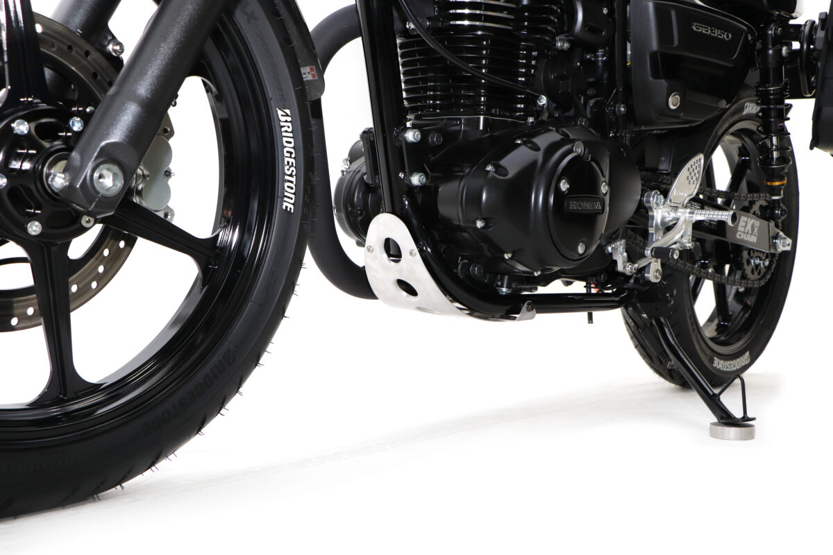 エンジン下部を飛び石などからガードするもの。スクランブラー系カスタムから派生し、Cafe Racer カスタムでも注目されるようになったパーツです。