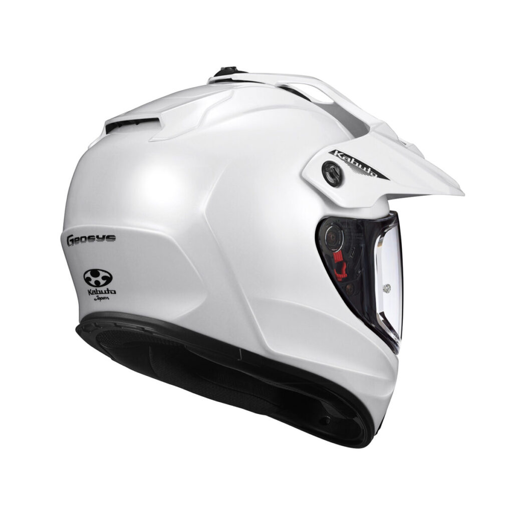 本格的なアドベンチャーライディングをサポートするためのバイザーを採用したスタイルで、オンロードにおける高速走行をも快適にこなせる、Kabutoとしては初となるデュアルパーパスモデル「GEOSYS」。