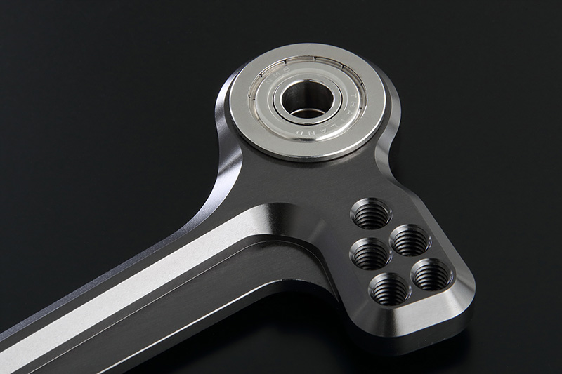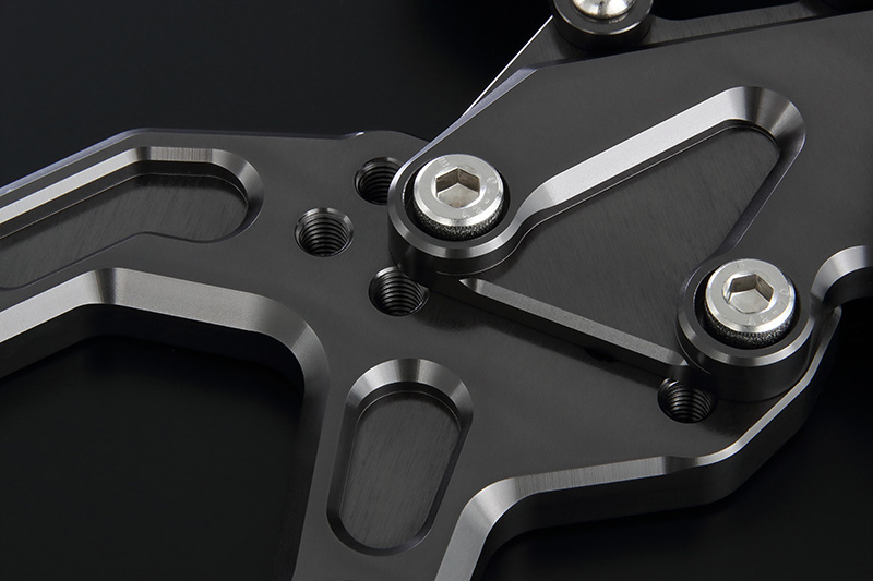レーシングパーツ同様の肉抜き加工を施し、軽量化に貢献しています。