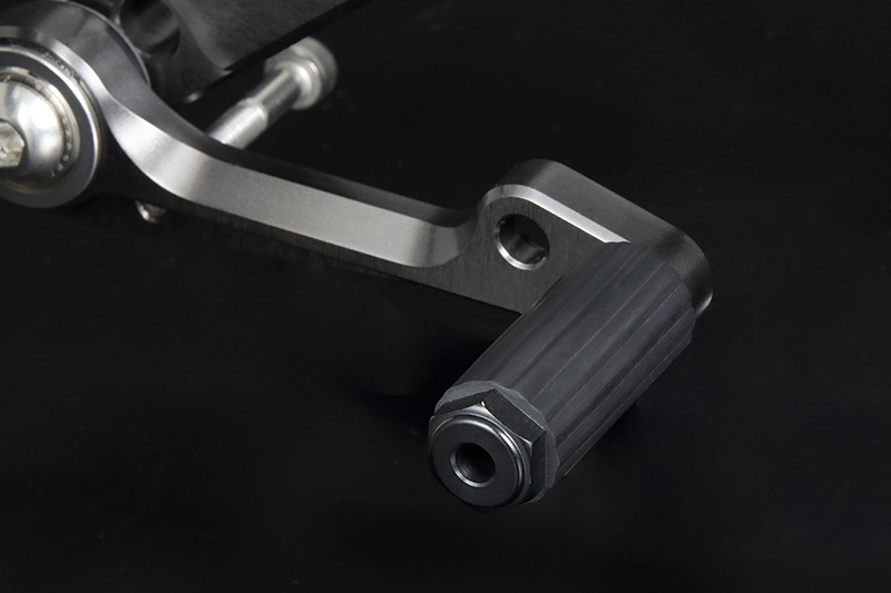 3面加工を施したヒールプレートのデザインは、ヨシムラGSX-R1000レーサーで採用された形状をオマージュしています。
