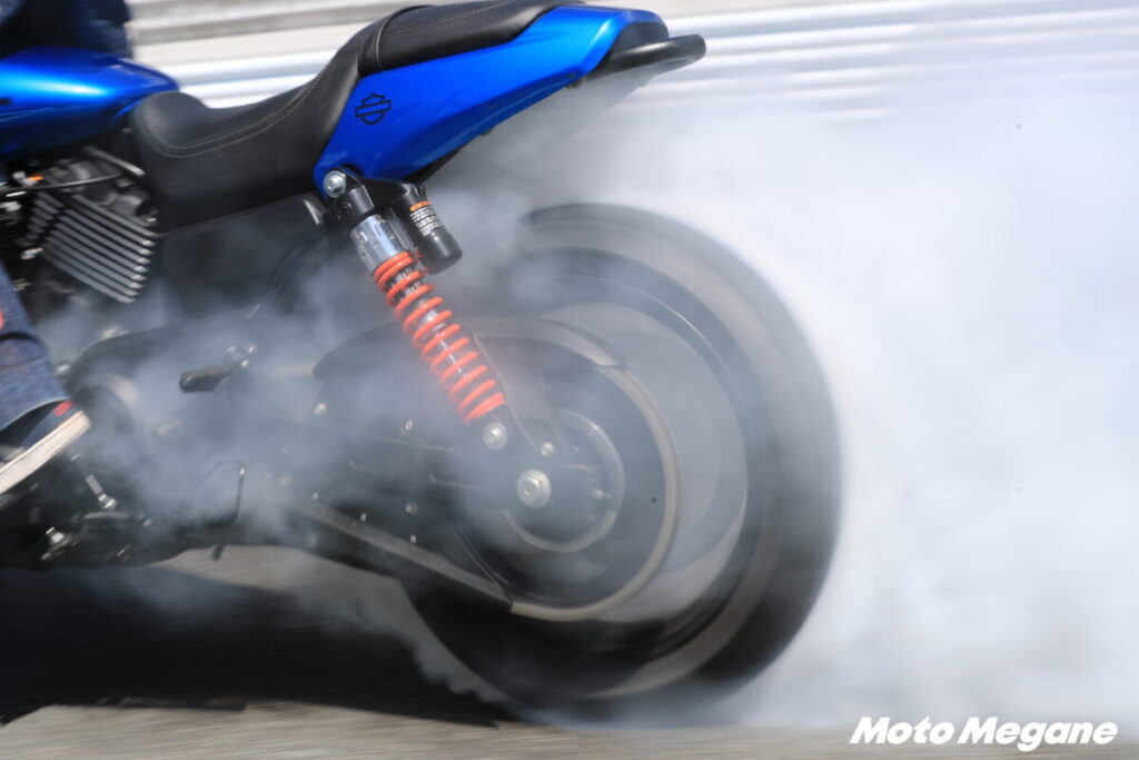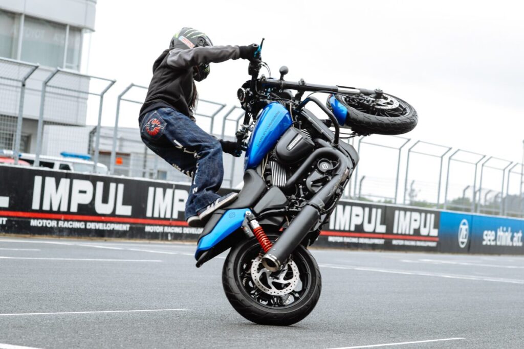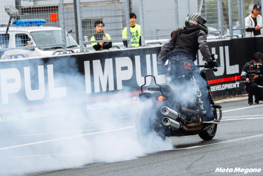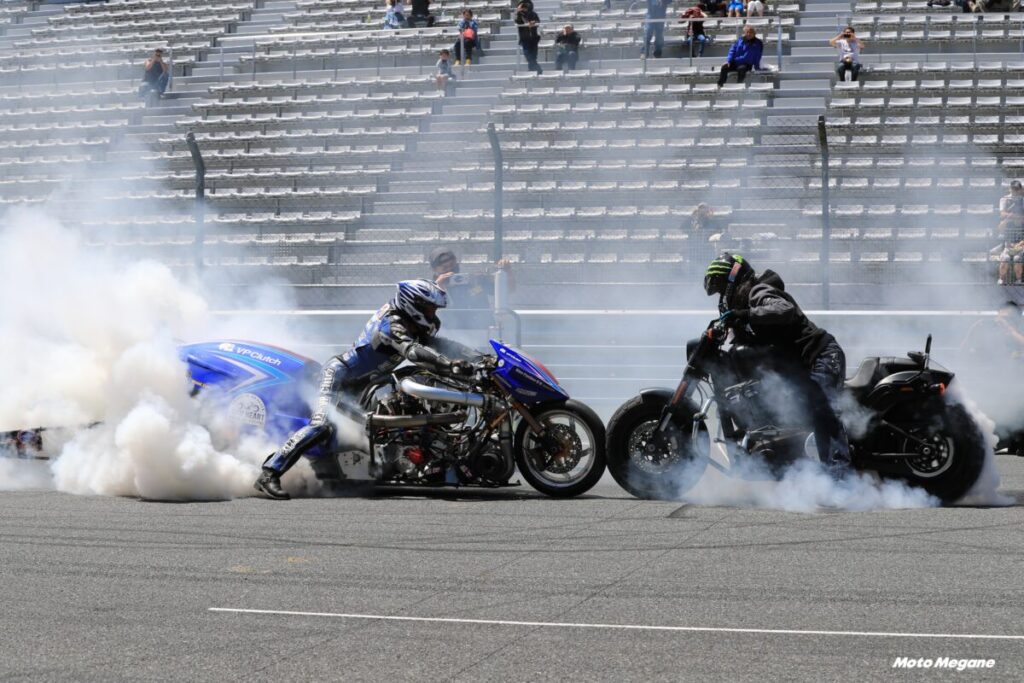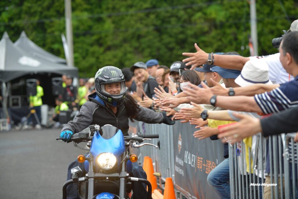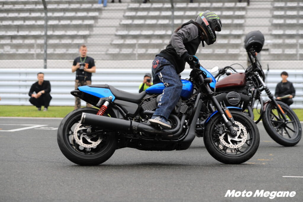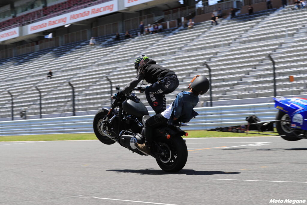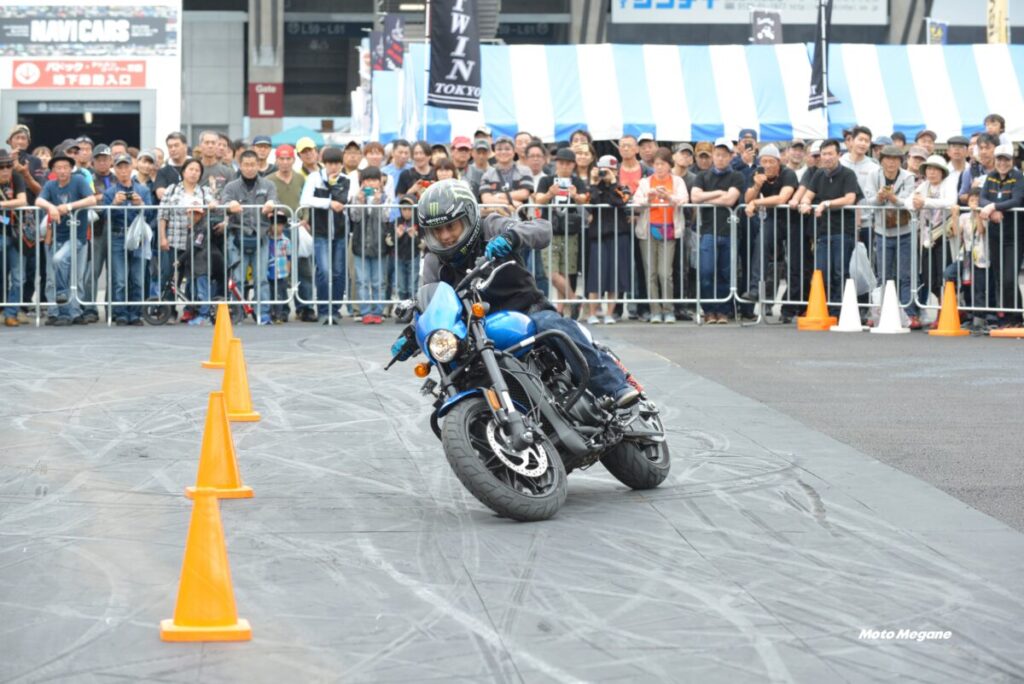 世界的プロライダーらによるスタントやデモランショーも見どころの一つ。低く長いハーレーダビッドソンを手足のように扱う走りは驚きの連続だ!