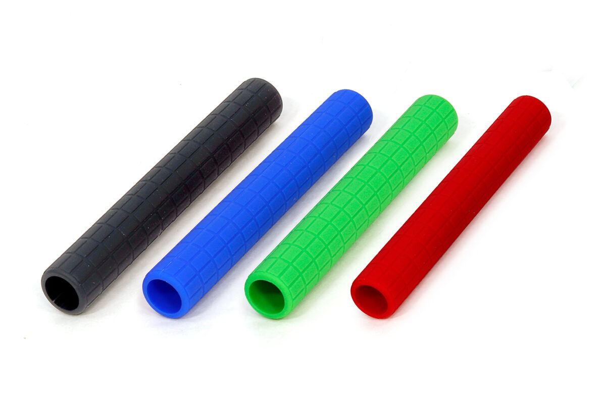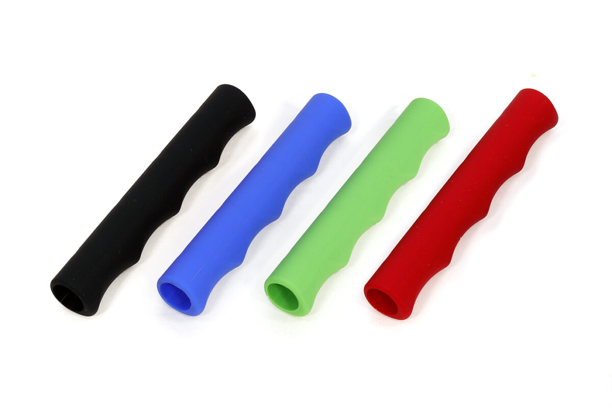シリコンならではの柔軟性を生かし、指が滑りにくく振動吸収性に優れたレバーラップです。指の収まりがよく、クッション性の高い「フィンガー」と、好みの長さにカットして使える「ブロック」の2種類からお選びください。