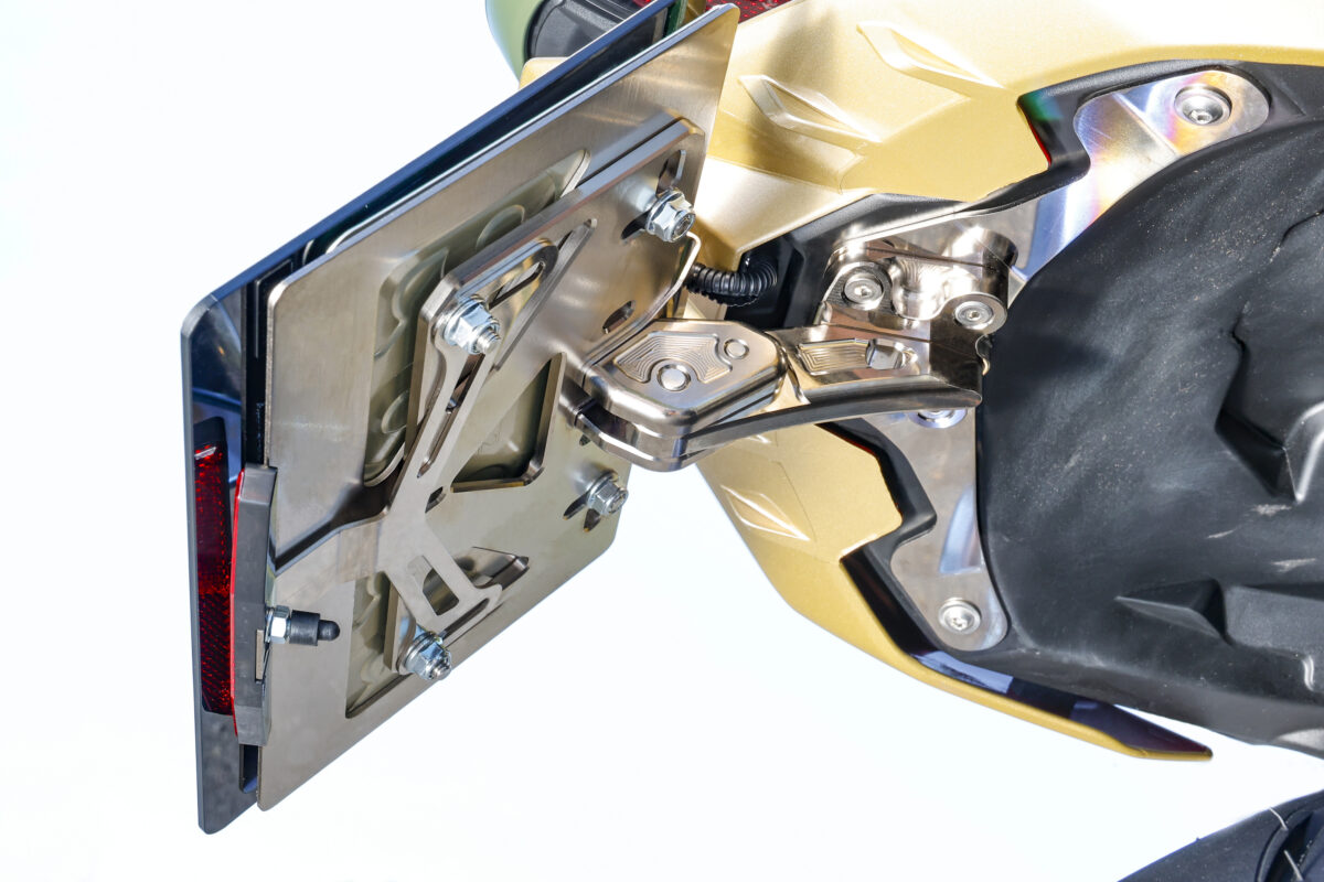 ステップベースはワンピース構造。張り出しを抑えることで、操作性を向上させている。チェンジペダル側は同軸タイプとし、クイックシフターとの相性を向上。ダイレクトなシフトフィールが直感的で楽しいライディングを実現。ポジションは、後10mm/20mm、上10mm/20mmの4つを用意。