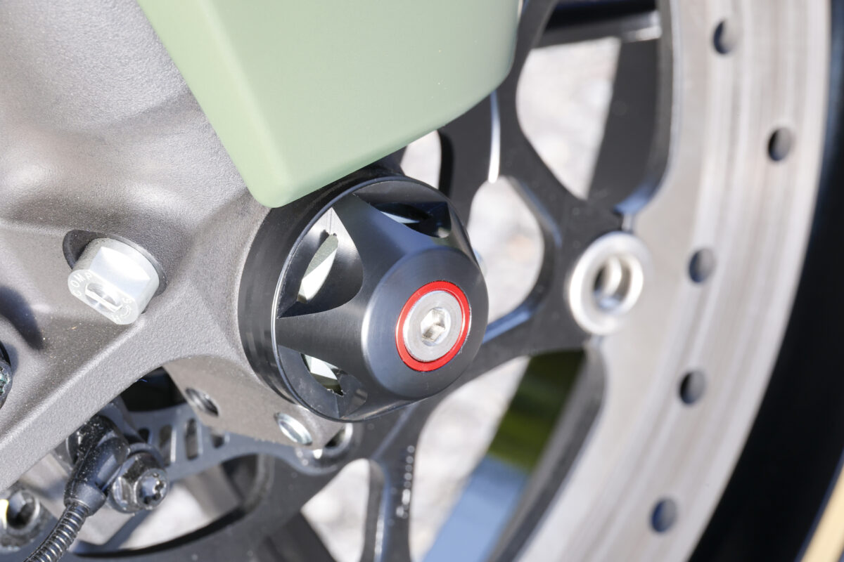 転倒によるダメージを軽減し、自走率を高めてくれる。張り出し感が少ないすっきりとした印象に仕上げているが、スライダーとしての機能を発揮する。2024年式で適合確認済み。