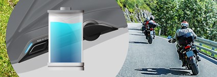 これまでバッテリー一体型だった B+COM をメインユニットとボタンユニットに分離させることで、ヘルメットになじむスリムなデザインと、バッテリー使用可能時間最大 20 時間(※)の両立を実現。仲間たちとのツーリングはもちろん、泊まりがけの遠方へのソロツーリングでも、残りの充電時間を気にすることなく楽しむことができます。