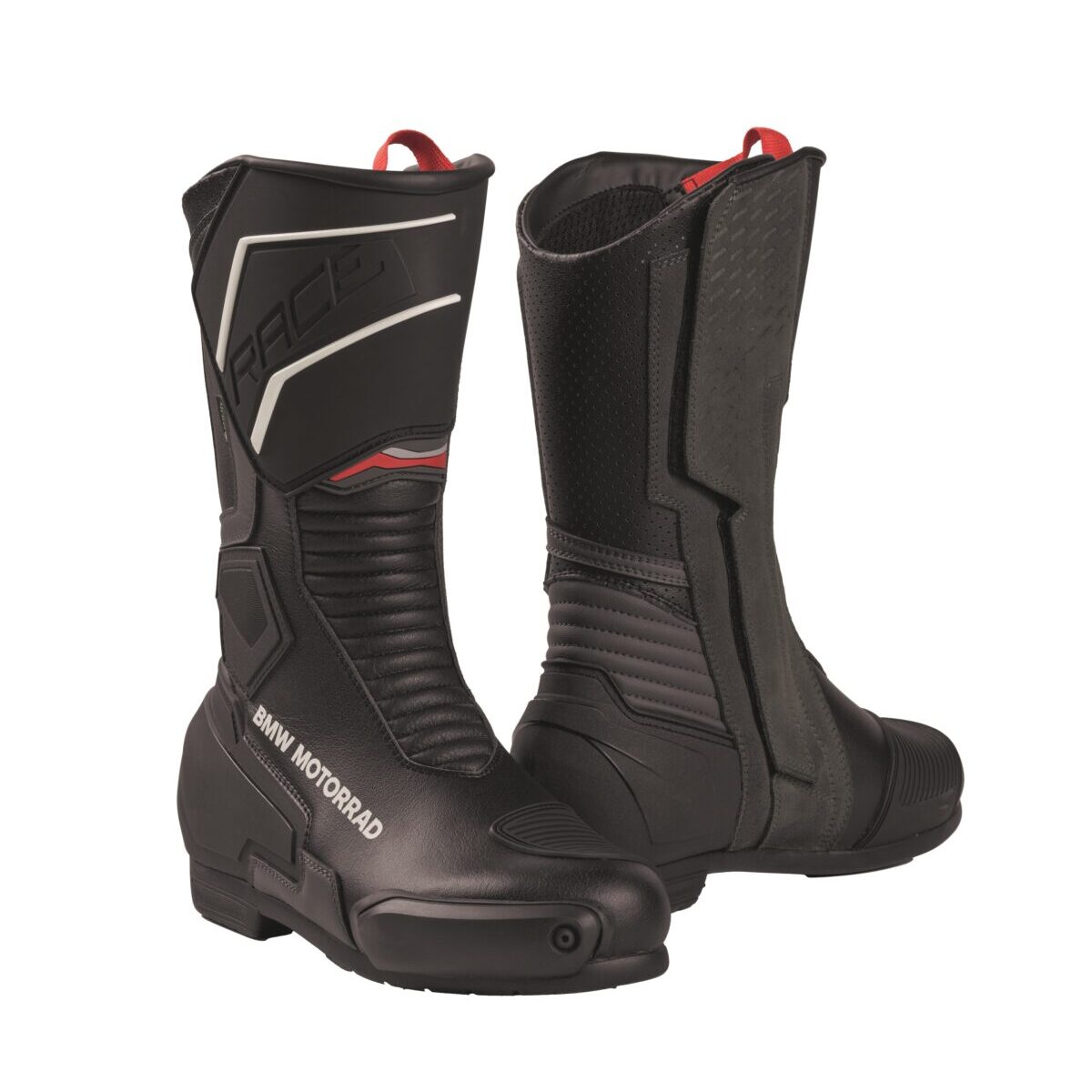 防風・防水性を備えたプロレース GTX ブーツは、洗練されたルックスと様々な安全機能が大きな魅力です。デザインに溶け込んだBMW Motorradの文字ロゴが、存在感を示すさりげないアクセント。つま先スライダー、大型 3D ヒールガード、すね部ガードはライダーを守るとともに、本体の耐久性もアップさせています。