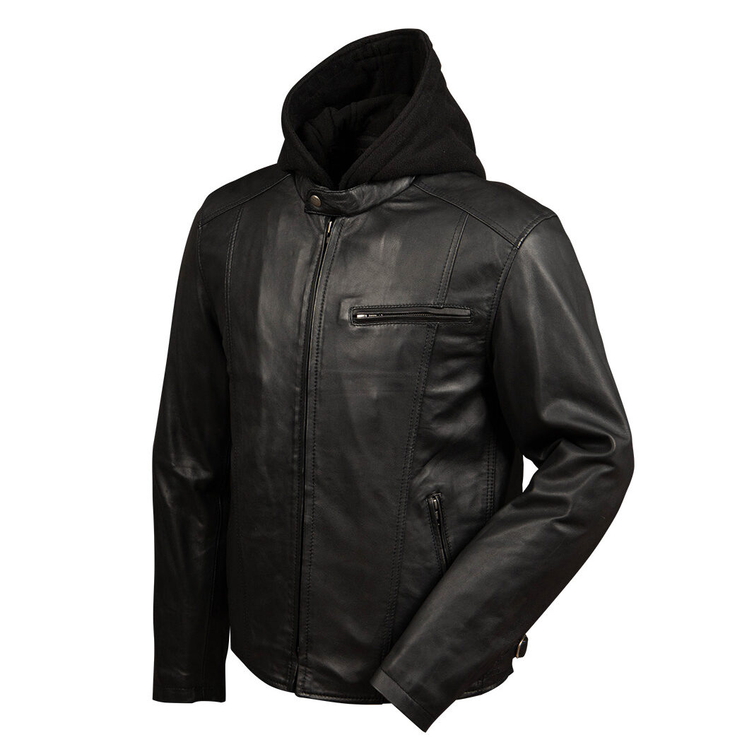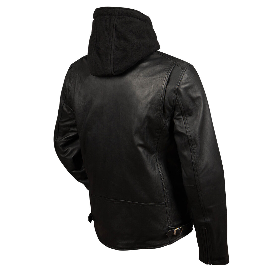 フードを取り外せばシンプルなシングルライダースになり、スタイルの幅が広い一着。