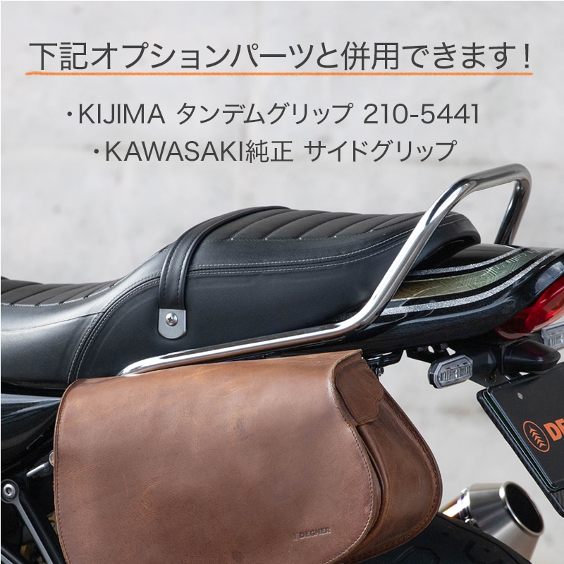株式会社デグナーは、Z900RS専用のレザーおよびシンセティックレザーサドルバッグのタンデムグリップ対応モデルをリリースした。