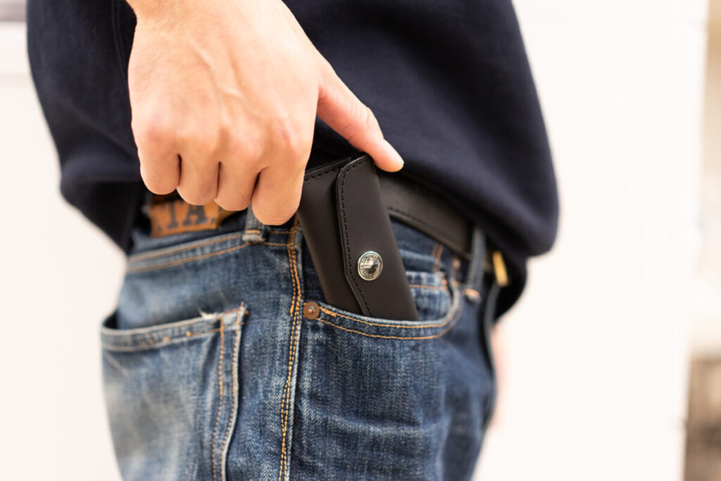 スリムながら小銭は約20枚、お札3枚と十分な収納力。贅沢に本革を使用し、ズボンやジャケットの胸ポケット、小さなハンドバッグに入れても邪魔にならないサイズ感。