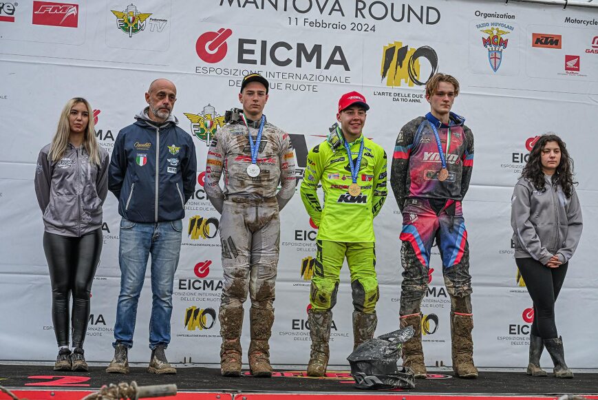 ファンティック・ファクトリーレーシングからEMX125に参戦する若手たちは、サルディニアでの好調さをそのままマントヴァに持ち込んでのレースである。MXGPの開幕を1か月後に控えた週末、エントラントは通常よりもはるかに多い台数となり、2グループに分かれての予選が開催された。第1グループにはシモーネ=マンチーニとドゥ=ヴェン・マックグレンが出走。シモーネは悪化するトラックコンディションをものともせず、予選5位につける上々の結果を見せた。ドゥはいまだケガからの回復途上ながらも、シモーネに続く6位でフィニッシュ。第2グループでレッド・プレートのXX125を走らせるノエル=ザノーチはゼッケンに恥じぬ走りを魅せ、予選2位につけた。