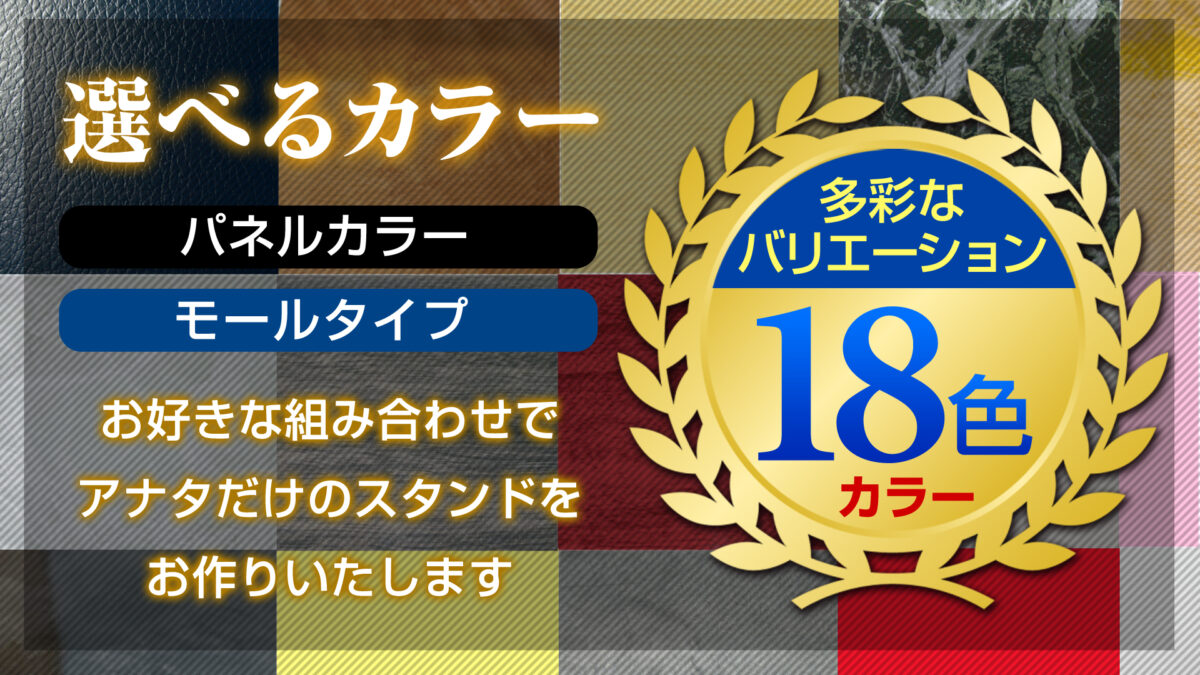 パネルカラーは18色もの豊富なバリエーションをご用意。モールタイプはメッキ、ブラックの2種類からお選びいただけます。