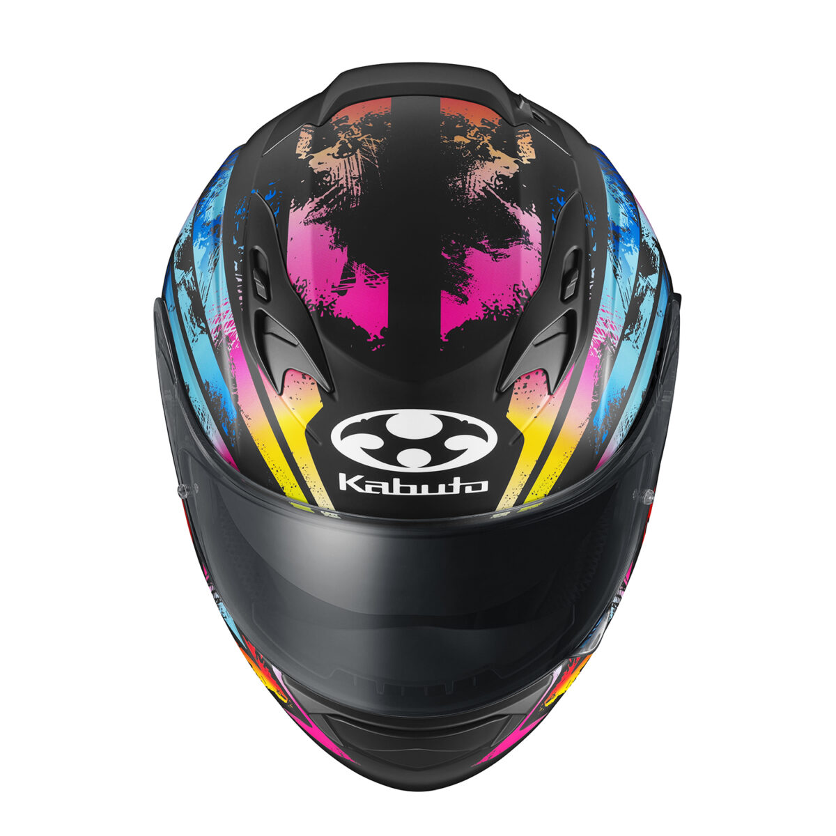 今回新たに登場する「PRISMA」は、マットブラックをベースに、ネオンピンク、ブルー、イエローといったビビッドな色彩を筆で大胆に描いたようなスプラッシュパターンが特徴のグラフィックモデル。カラフルなラインが複雑に交差しながら躍動感を生み出し、ヘルメット全体にアートのようなインパクトを与えます。光のプリズムが生み出す幻想的な煌めきが走りに躍動を与え、エネルギーに満ちたライダーの存在感を際立たせます。