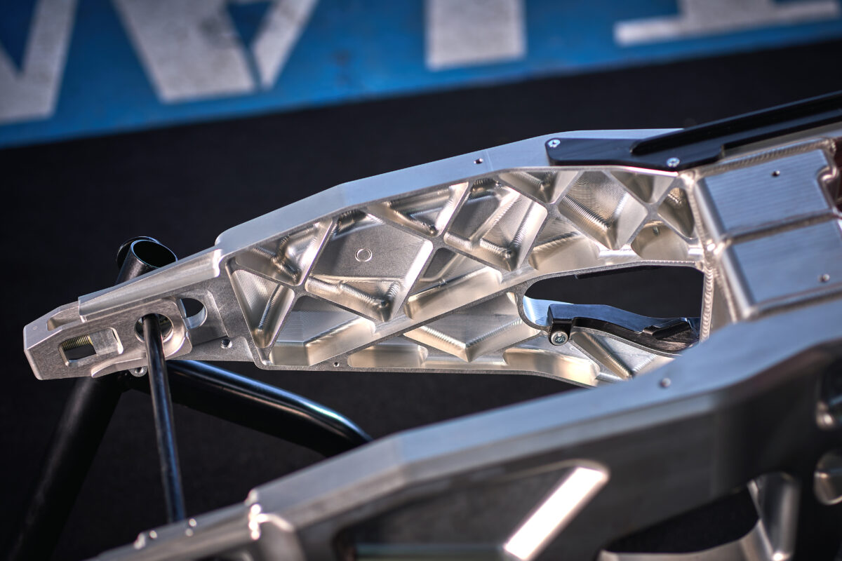 シャーシデザインは、bimotaの長年のシャーシ設計哲学に基づき、クロムモリブデン製のメインフレームとビレットアルミニウム合金プレートの2つの異なるフレーム材料を融合させています。