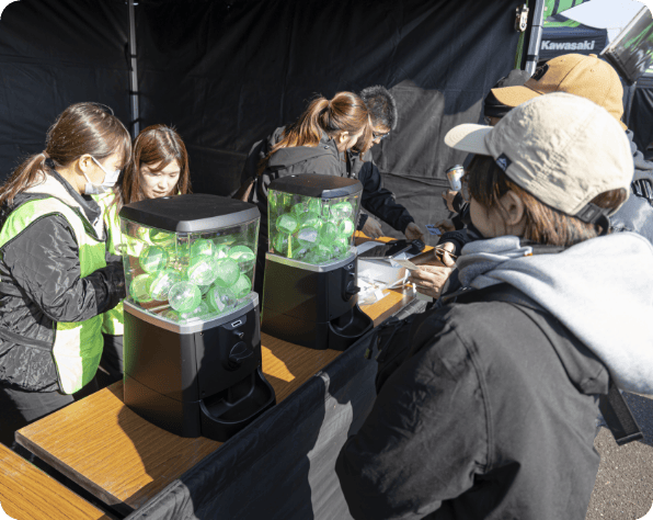 カワサキ プラザブースをはじめモーターサイクルパーツメーカーなど、様々な企業ブースが会場に集合します。お得な情報や商品をゲットしよう!