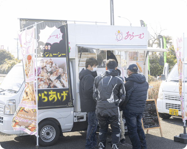 ランチメニューから、映えるスイーツまで、様々なキッチンカーが会場に集合します。