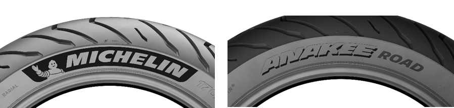 最新のレーザー技術による金型を使いタイヤ表面に施された微細な形状は、光の吸収により漆黒の美しいコントラストを醸し出し、その深みのある黒の陰影がタイヤのみならずバイクにも高級感を演出します。