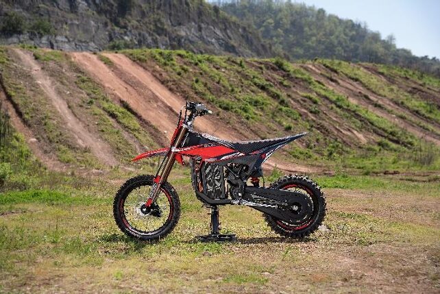 フロント14インチ、リア12インチのMXタイヤを装着する、本格派MXスタイルのジュニア(小学生高学年~)向けモデル。バッテリーを72V30Whに大型化し、モーター出力は8.5kwとさらにパワフルに。航続距離は100㎞を誇る。キッズモデルからエンジンモデルをつなぐ、唯一のパワフルなソリューション。
