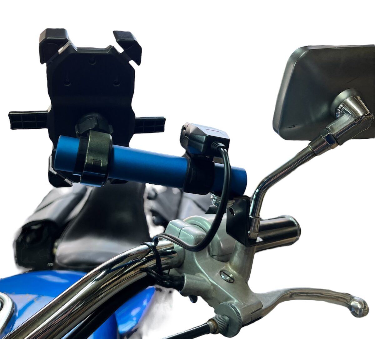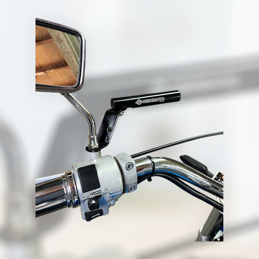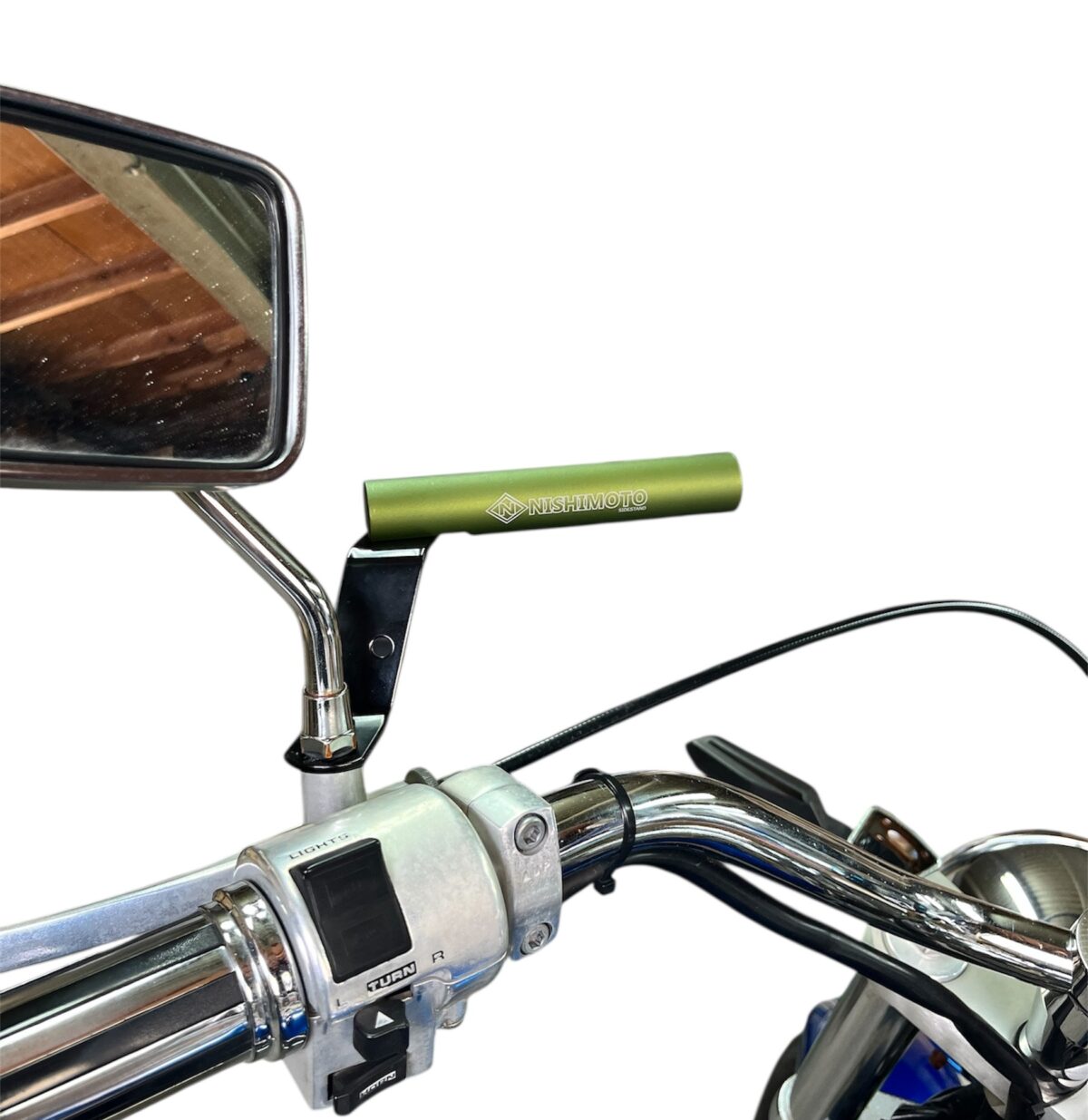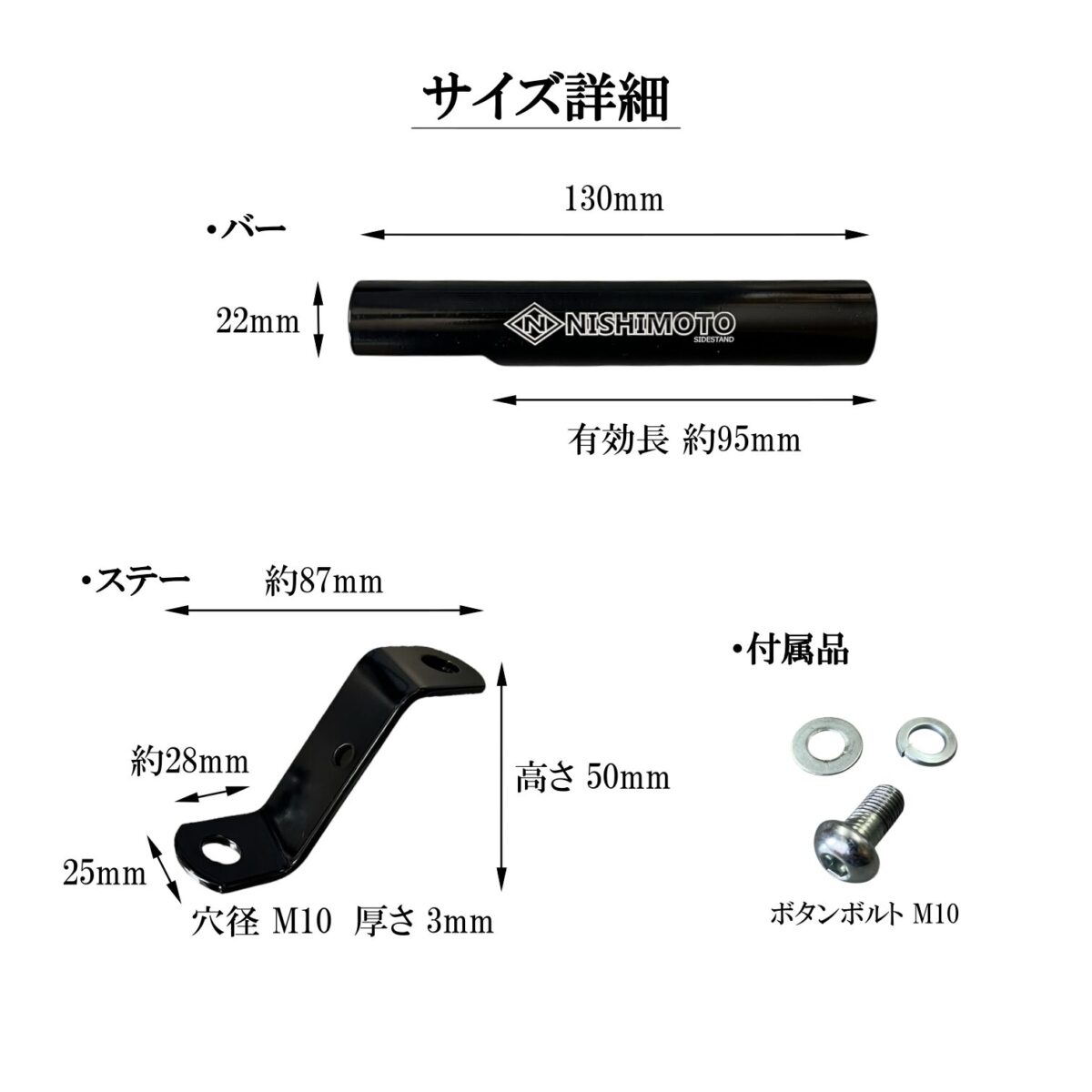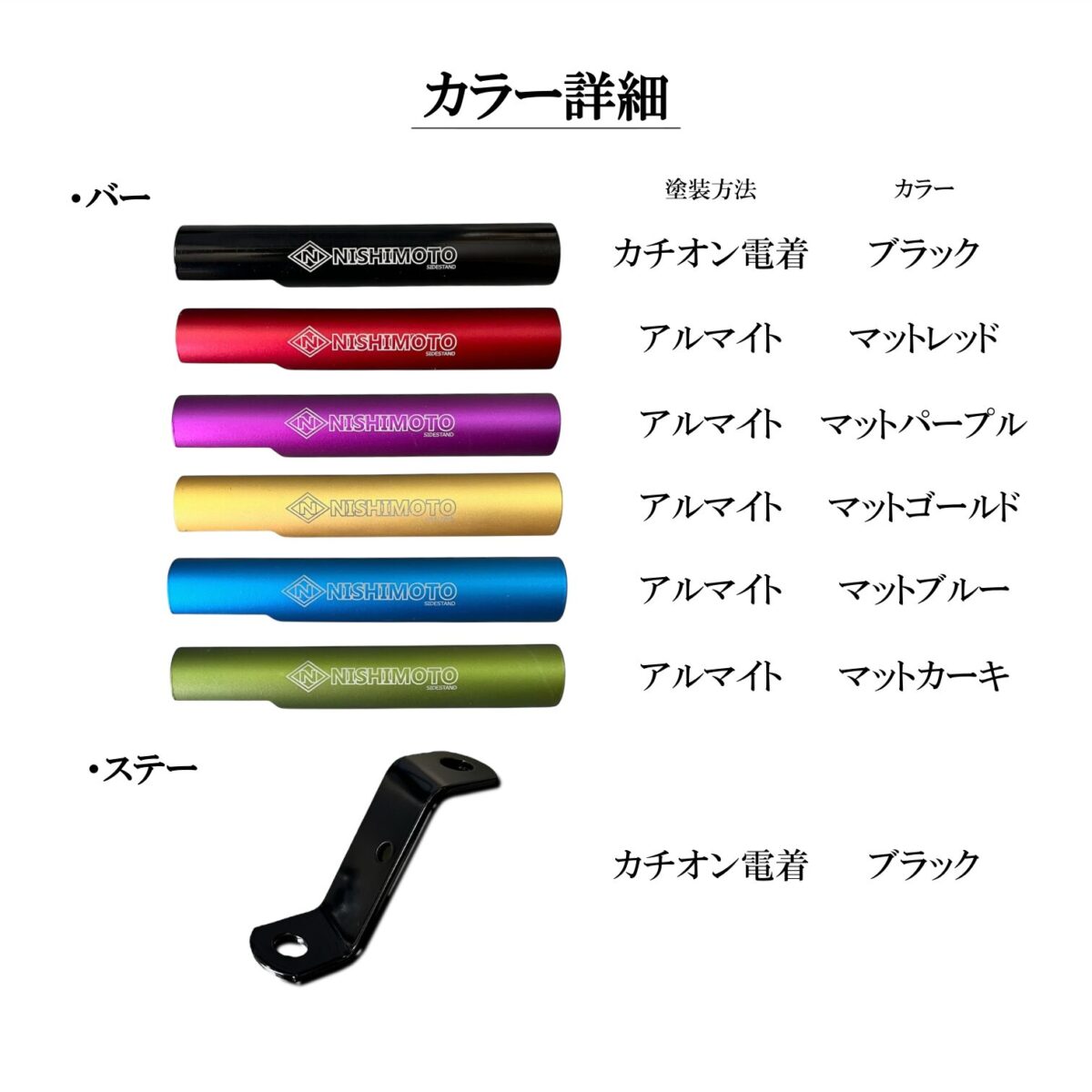 同製品は、スマホホルダーやUSBポートなどの装着を想定し、有効長95mmのバーを採用した。また、耐久性の高いステンレス製ステーに加え、8mm・10mmのミラーネジに対応し、ネジ調整式で自在に角度調整が可能だ。カラーは6色展開で、取付も簡単なため初心者でも安心である。