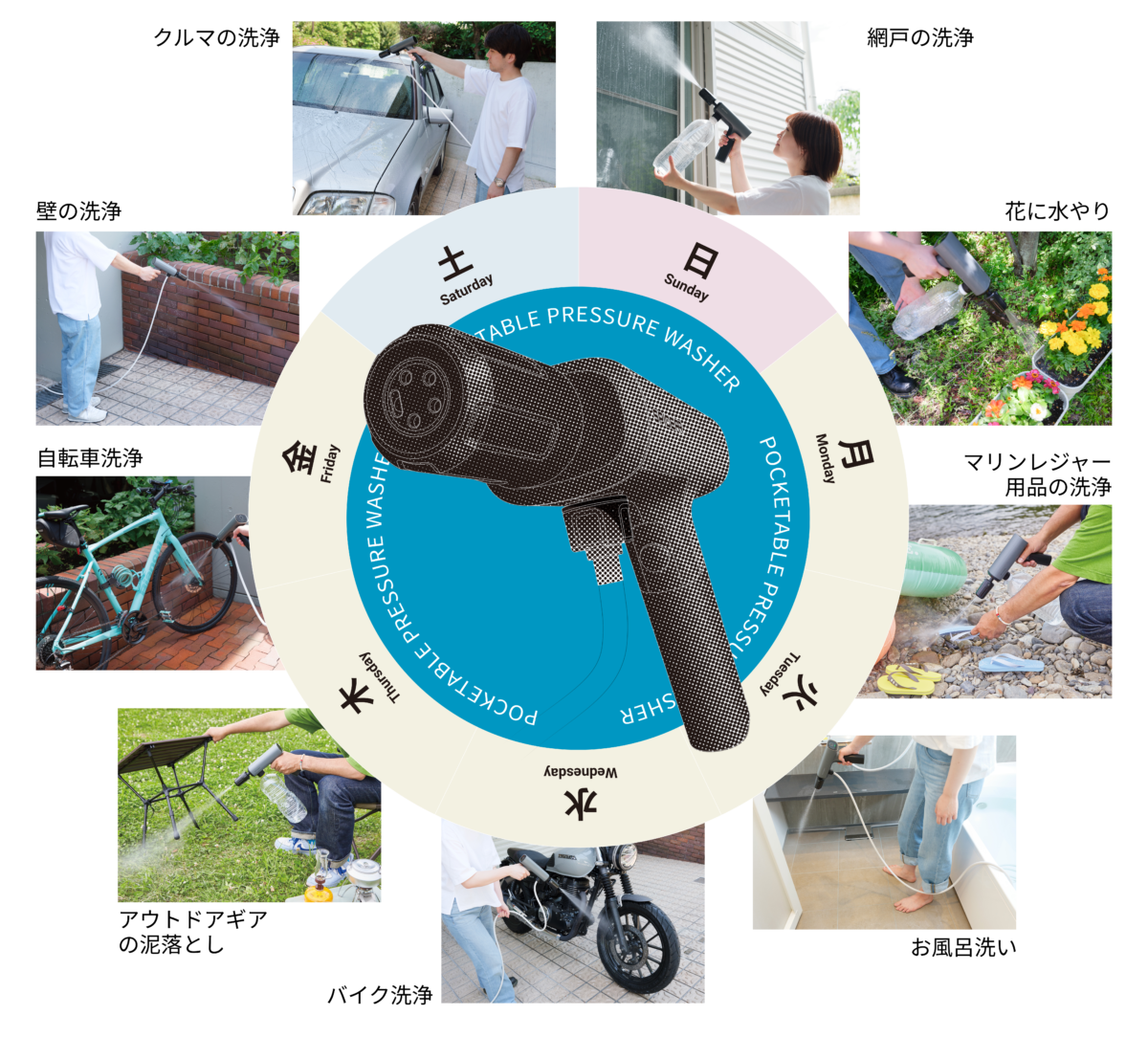 第1弾、日常使いできる「ポケッタブル高圧洗浄機SWU-1」 7月26日 発売業界最軽量、最小サイズ! 充電式で水栓いらず、気軽にどこでも使用可能