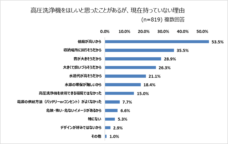 値段が高いから(53.5%)、収納場所に困りそうだから(35.5%)、音が大きそうだから(28.9%)
