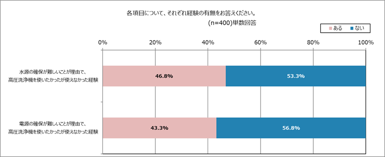 ・水源の確保が難しいことが理由で、高圧洗浄機を使いたかったが使えなかった経験