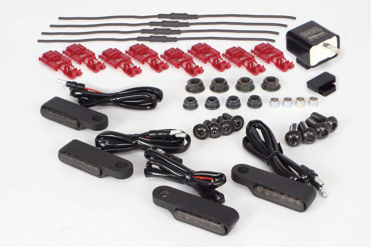 汎用オーバルミニLEDウインカーは、2個セットと4個セットの2種類。4個セットには、SP武川製ワイドレンジフラッシャーリレーが付属。