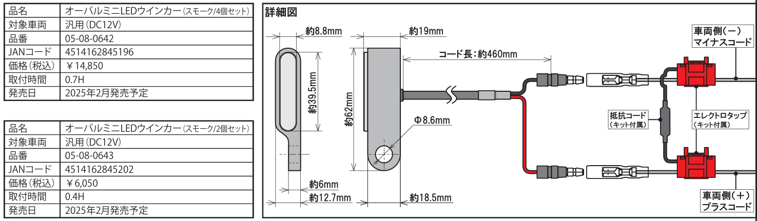 スリムボディー形状に高輝度LEDを採用し、ウインカー本体のコンパクト化を実現した “オーバルミニLEDウインカー” 新登場!!