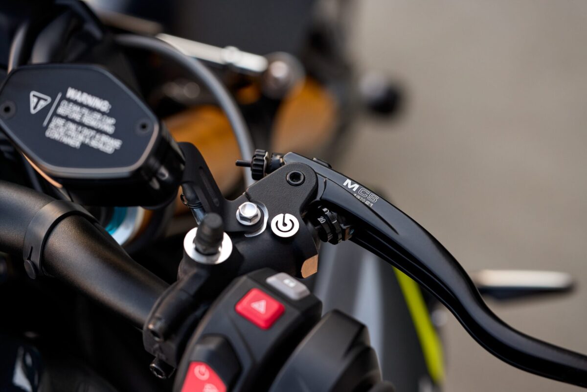新型SPEED TRIPLE 1200 RSは、次世代レベルの精度とコントロールを実現するために、調整可能なステアリングダンパーも装備しており、あらゆる状況においてスムーズで予測可能なハンドリングを実現します。また、MCSレバー付きのブレンボ製Stylemaキャリパーも装備しており、非の打ちどころのない制動性能とカスタマイズ可能なブレーキフィールを提供します。また、新型SPEED TRIPLE 1200 RSには、グリップ、安定性、耐久性を最適化するバイコンパウンドデザインが採用されたピレリ社製ディアブロ スーパーコルサSP V3が標準装備されています。