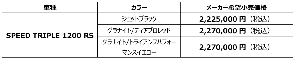 新型SPEED TRIPLE 1200 RSは全国のトライアンフ正規販売店にて、2025年4月から販売開始の予