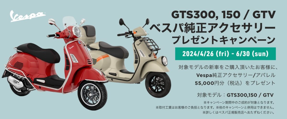 ① タイトル : GTS 300/GTS 150 / GTV ベスパ純正アクセサリー プレゼントキャンペーン