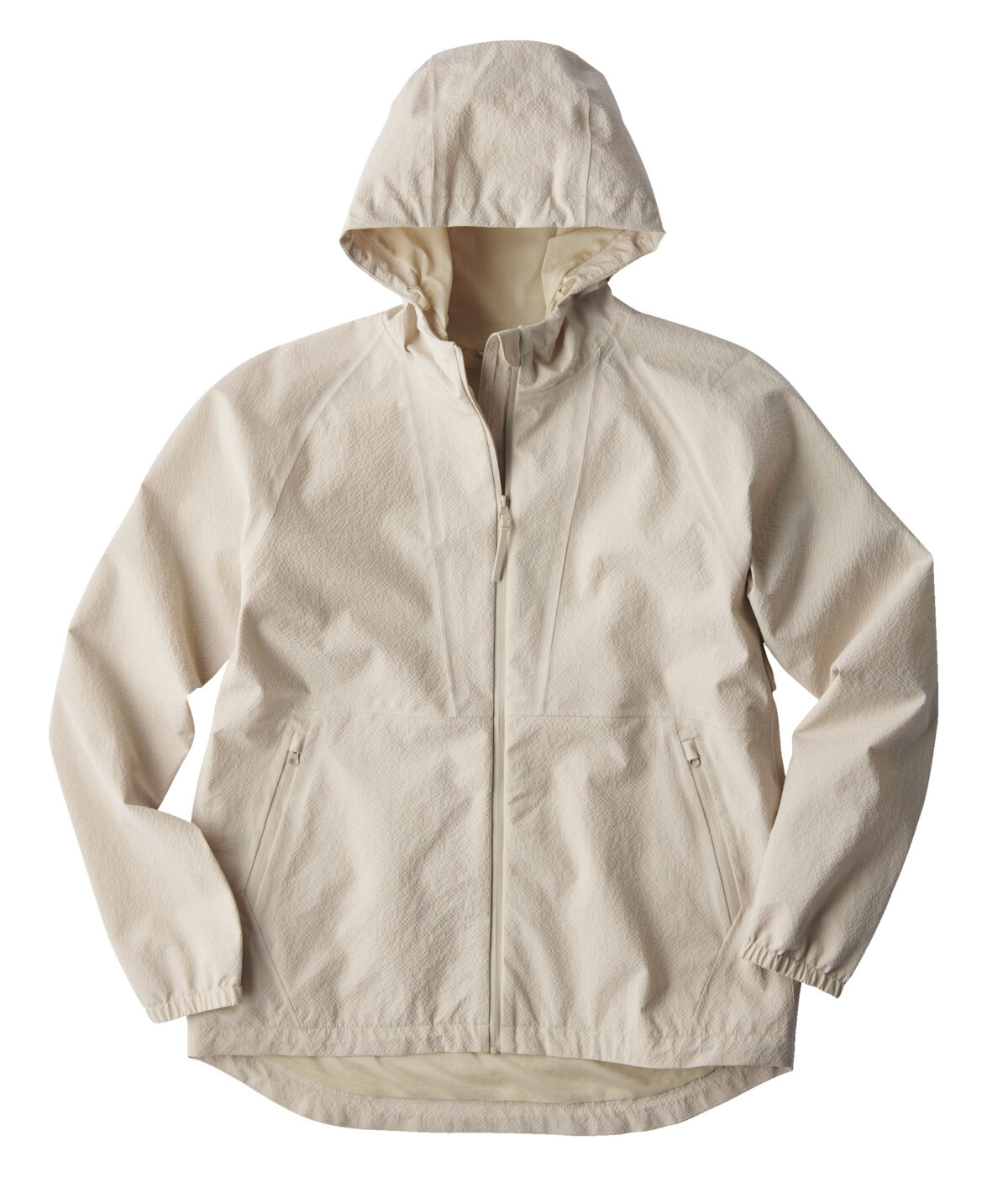 一般的には雨の日が比較的多い傾向がある春にこそ信頼できるレインウェアが活躍いたします。水を弾くだけの耐久撥水素材だけではなく、完全に水をシャットアウトする防水素材の TPU ラミネート生地を採用、外から侵入する雨をしっかりと防いでくれます。シアサッカーの生地感は、発色がよく、明るく華やかな色合いが映えるので、花が咲き誇り、自然が色とりどりの美しさを見せる春の季節にピッタリの明るい印象を与えてくれます。雨風の日で活躍する「機能性」と、日常着としても着られる「デザイン性」を備えたレインウェアです。