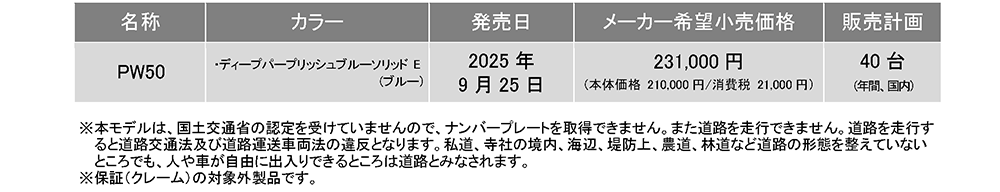PW50 製品サイト: https://www.yamaha-motor.co.jp/mc/lineup/pw/
