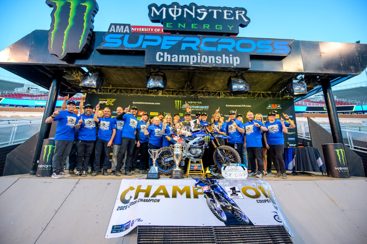 2025年5月11日(土)、AMAスーパークロス選手権の第17戦ソルトレイクシティーで、「Monster Energy Yamaha Star Racing」から「YZ450F」で450SXに参戦する#2クーパー・ウエブ選手が4位とし、自身にとって2021年以来3回目のチャンピオンに輝きました。ヤマハ発動機株式会社にとっては2022年のイーライ・トマック選手以来、3年ぶりとなる450SXでのチャンピオン獲得となりました。