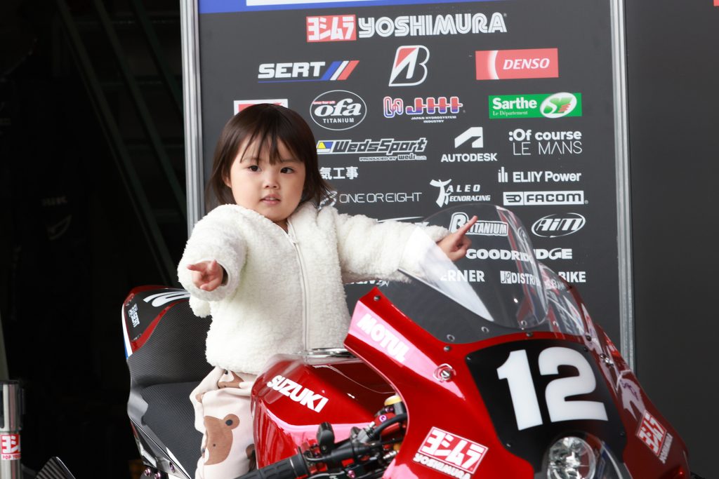 中学生以下のお子様はYoshimura SERT Motulマシンにまたがって記念撮影をしていただくことが出来ます。