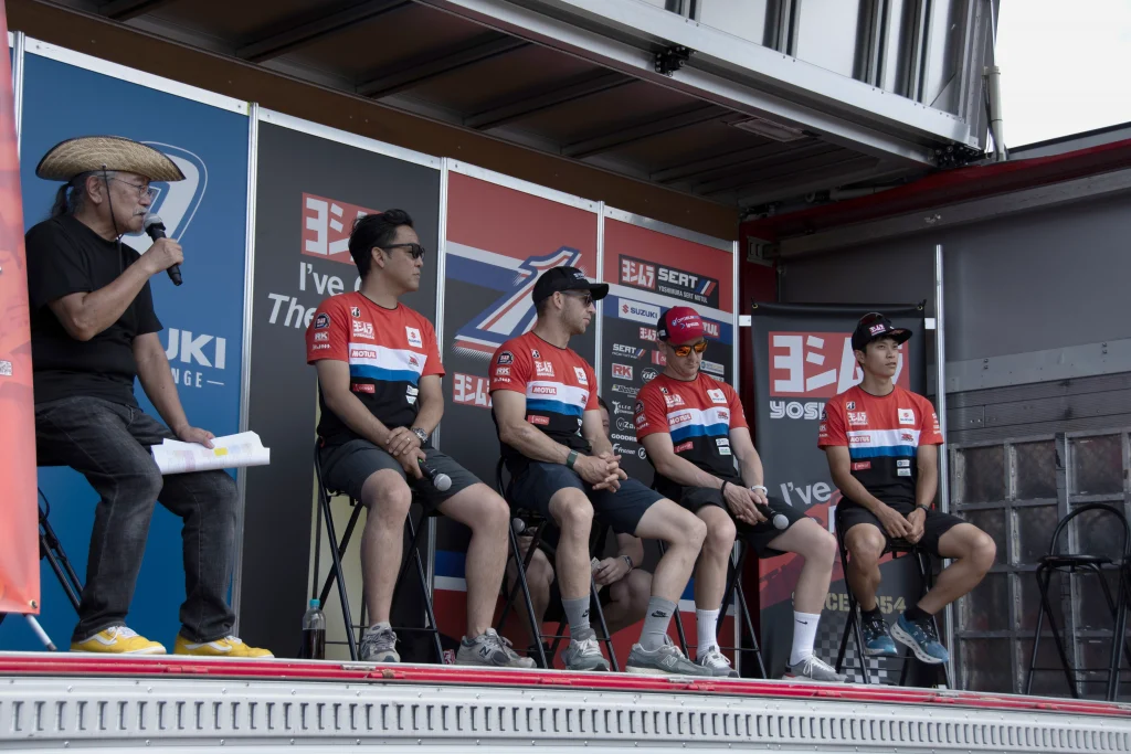 「YOSHIMURA SERT MOTULトークショー」では加藤チームディレクター、グレッグ・ブラック選手、ダン・リンフット選手、渥美 心選手が登壇。今シーズンのEWC戦について、ルマン戦やスパ戦の振り返りのほか、鈴鹿テストでのSUZUKI GSX-R1000Rのマシン状況報告と、本戦への抱負を語りました。