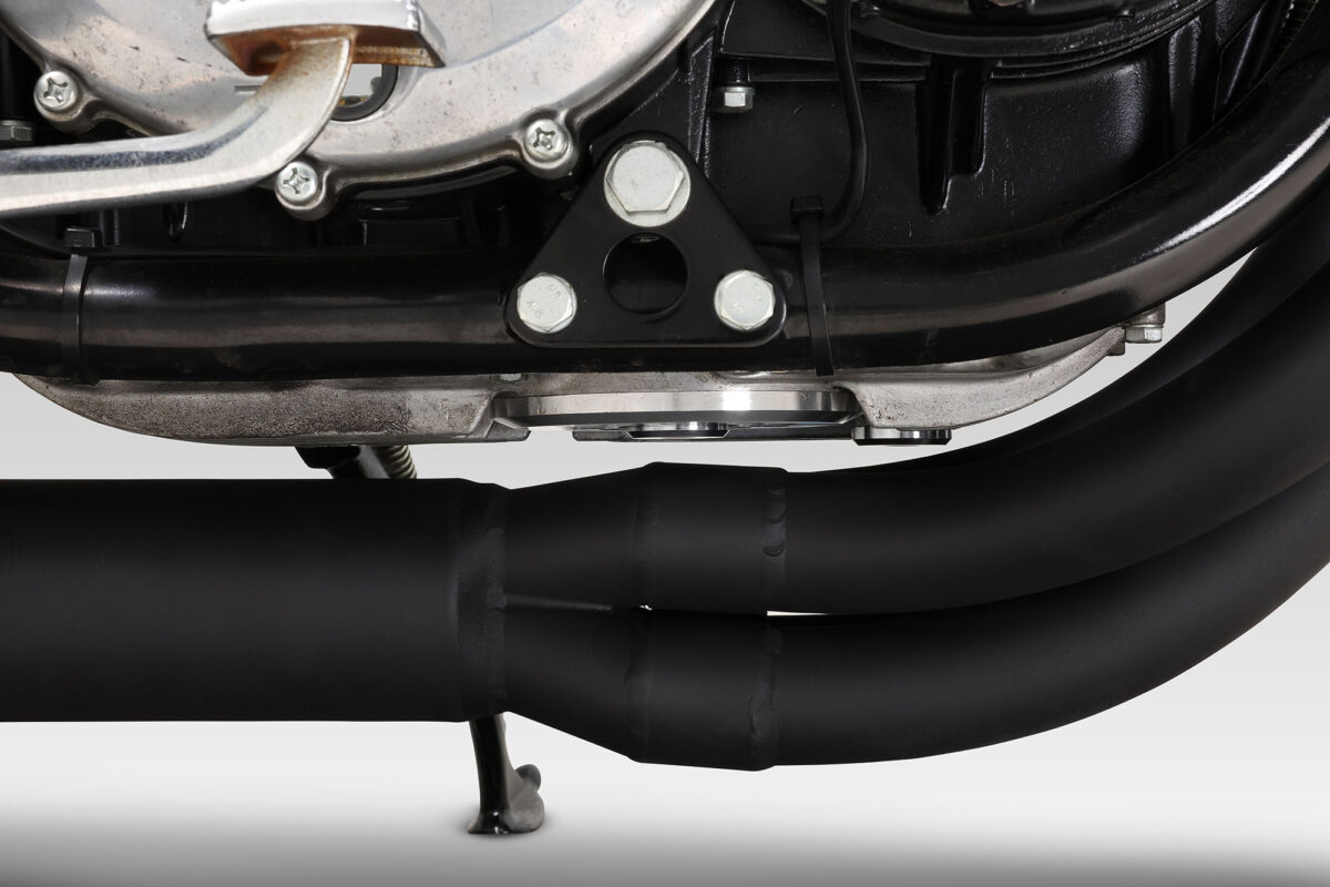 これによりマフラーとエンジンの間のクリアランスを狭めることができ、凝縮感のあるデザインを実現しています。同時に、迫力あるΦ42.7㎜のエキゾーストパイプを採用しながらも十分な最低地上高を確保しました。
