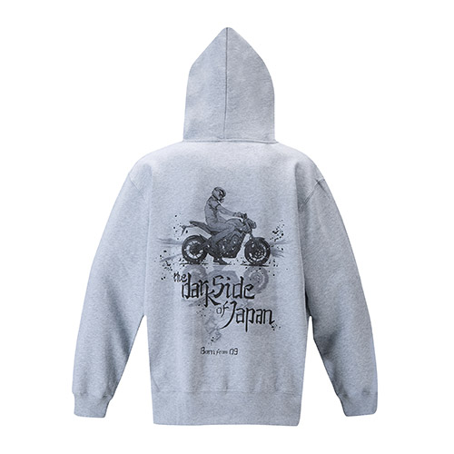 初代「MT-09」のイメージに「Dark Side of Japan」ロゴを描きおろしたデザインフーディー