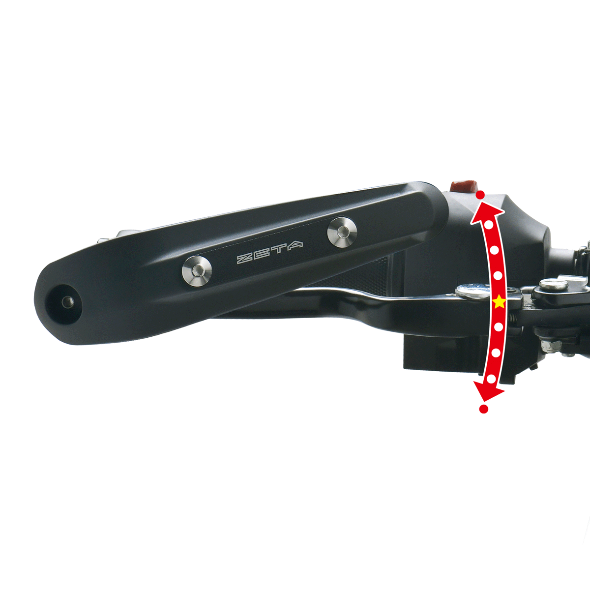 アームボルトを緩める事で、バーエンドを軸に上下無段階の角度調節が可能。