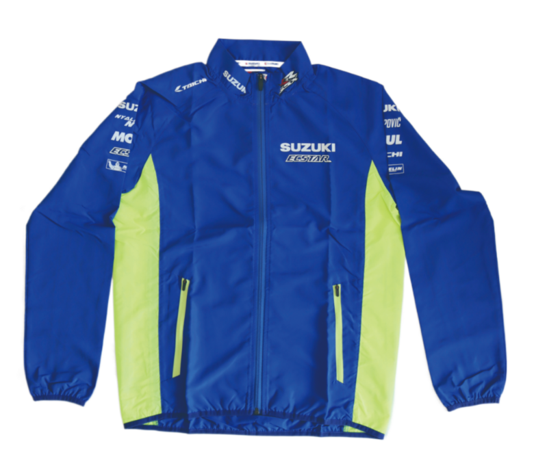 MotoGPチーム(Team SUZUKI ECSTAR)の チームウインドブレーカー(非売品)。MotoGPで走るチームスズキエクスターのライダーは#36 ジョアン・ミルと #42 アレックス・リンスの二人。がんばれ‼︎