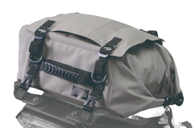 あらゆる方向の飛沫から、内容物を汚さず手入れも簡単なターポリン素材を採用。レインカバー不要で急な雨でも荷物は安心だ。