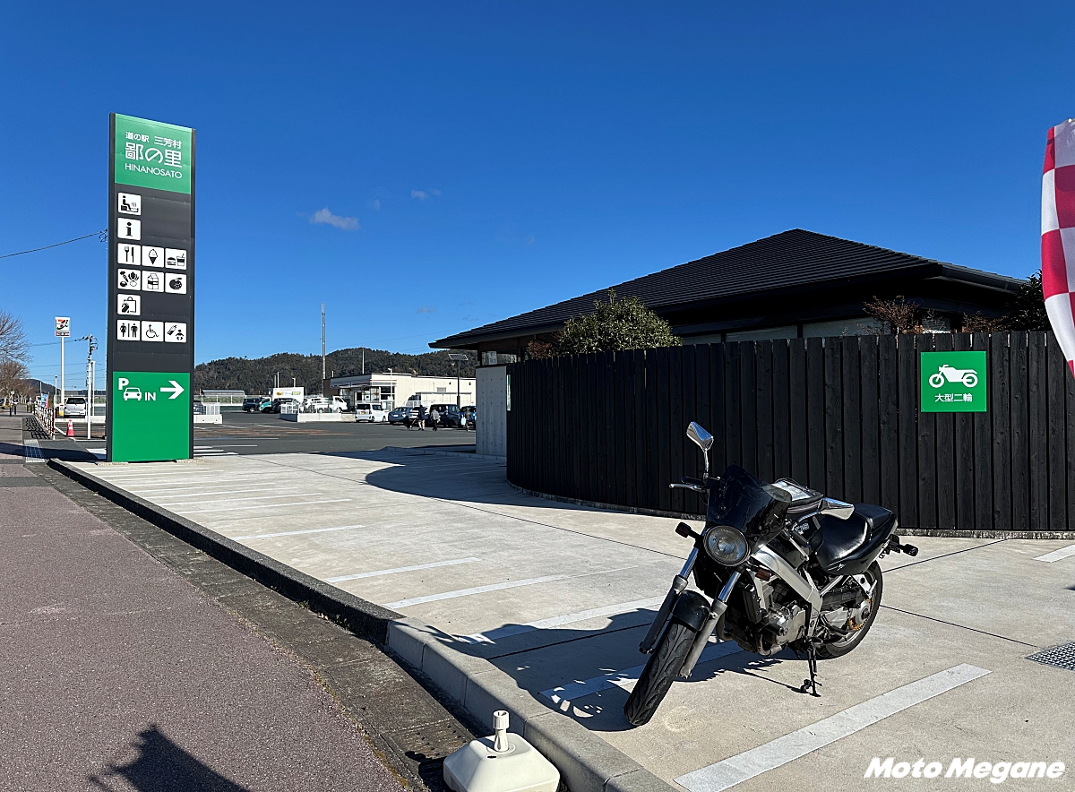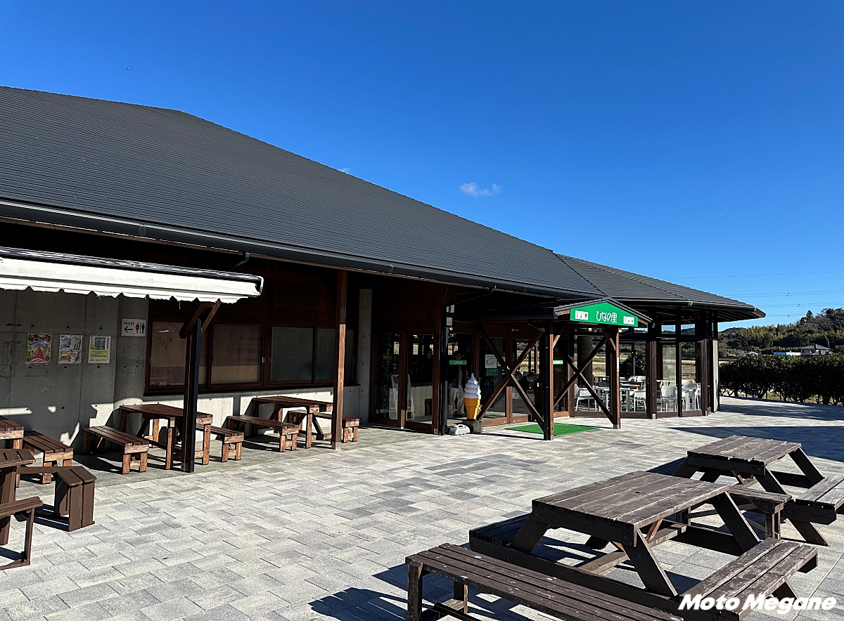 『道の駅 三芳村』は県道88号沿いにあり、館山自動車道の富浦ICから約10分とアクセスは良好。バイク用の駐車場も50台分完備する。2023年12月にリニューアルオープン。物産販売施設は、明るく開放的な店内となり、地元の牛乳を使用した商品や土産品、工芸品などを販売。鮮度が良く、価格も安価な地元産の農産物が並ぶ直売所は鮮度良く安価。加工品も充実しており、地元で製造される漬物や菓子類などを販売する。中庭にあるハンバーガーショップは、ここのハンバーガーを目当てに訪れる人も多い大人気店。アメリカンサイズのボリューミーなバーガーを楽しめる。物産販売所裏には足つぼロードと足湯があり、のどかな田園風景を眺めながら、足湯を楽しむことができる。
