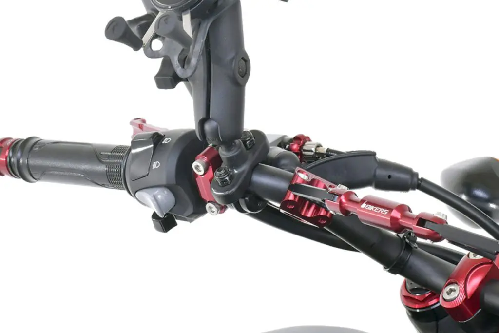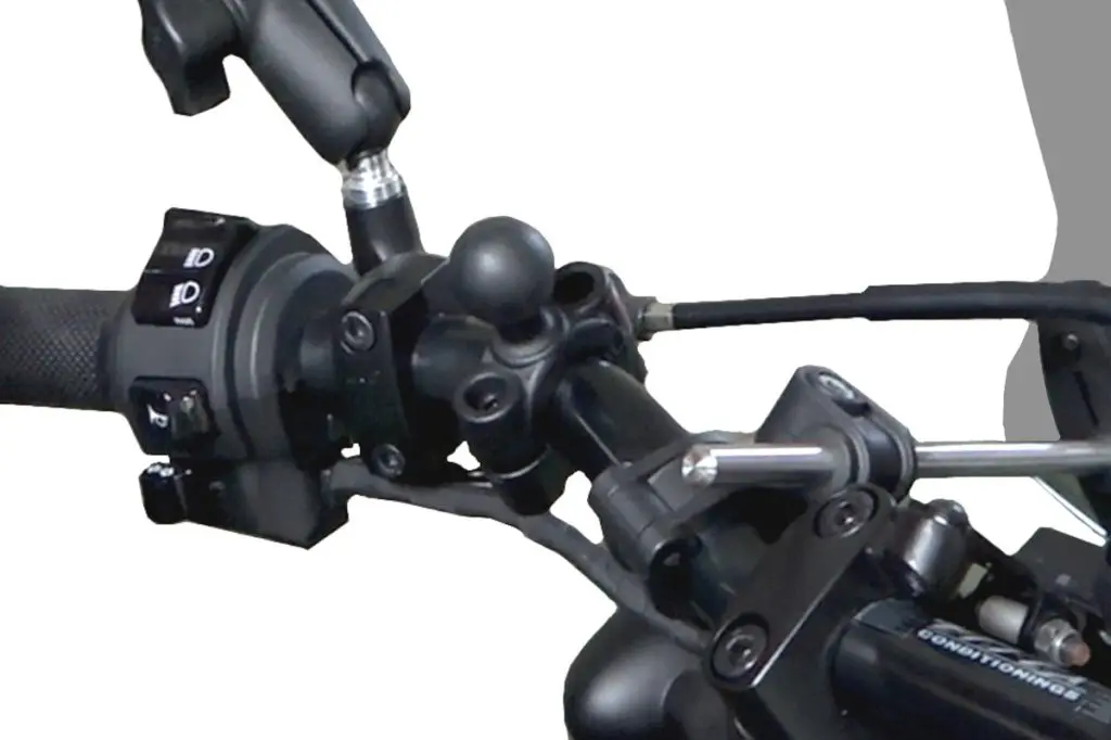 バイクに取り付けるベースの部分です。ハンドルバーであればクランプタイプ、セパハン車であればミラーホールなどに取り付け可能なパーツがあります。