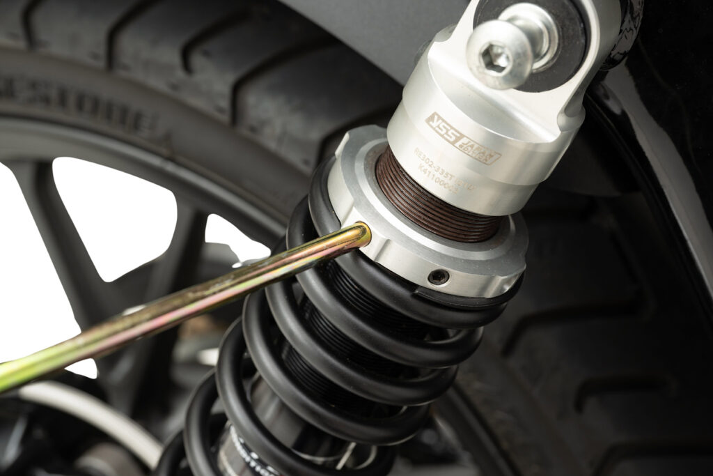 EFFEX×YSSのローダウンリアショックはローダウンで足つきを改善しつつも、しなやかな動きでコンフォートな乗り味を実現。