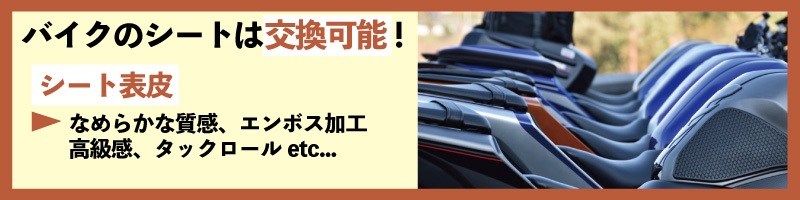 シート表皮のデザインや色が変わるとバイク全体の雰囲気がガラッと変わるので、カスタムする価値はあると言えます。