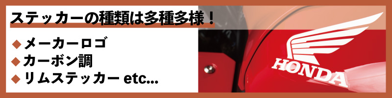 ステッカーには実にさまざまなデザインがありますが、バイクに貼ることの多い主要なステッカーをご紹介します。