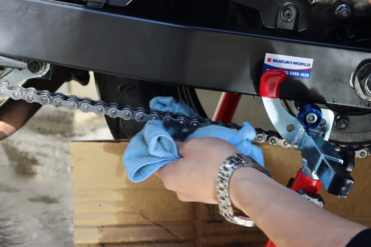 サーキット走行や高速道路の長距離走行など、チェーンに負荷の掛かる高速走行を行った場合は走行後に必ずメンテナンスを行うようにしたい。