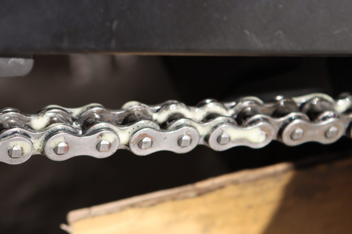 チェーンをメンテする場合は、まず汚れをしっかりと落とし、同時に劣化度合いをチェックすることが重要。もしたるんでいたり、錆びているような場合は、調整や交換が必要だ。