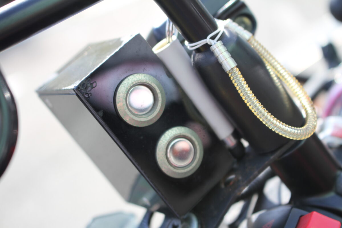 エンジンガードに付けたフォグランプです。 メインランプとリングランプを手元で操作できるように、ダンナさんがスイッチボックスを作ってくれました。
