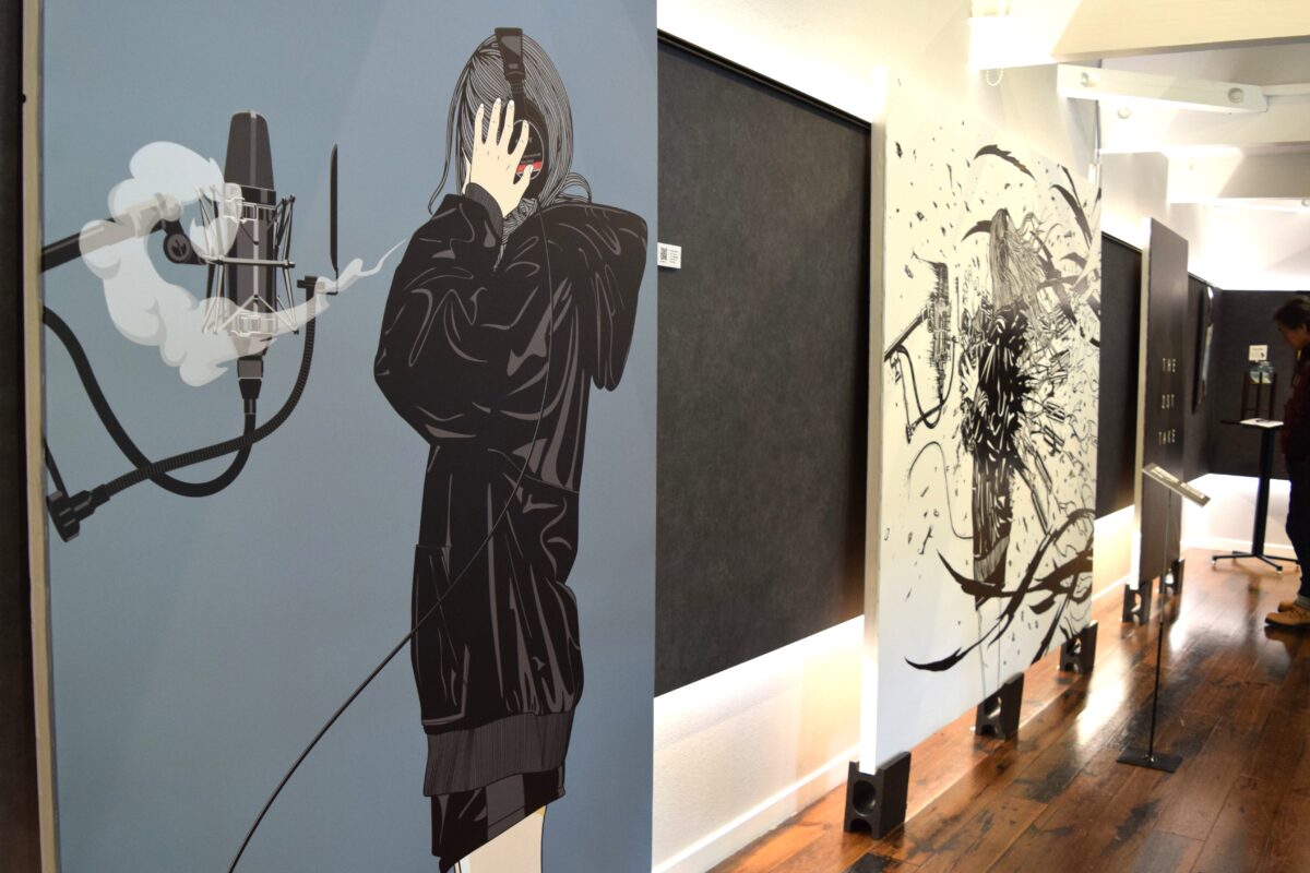 真ん中の歌唱中の絵が期間中にペン1本で書き上げた作品。離れて見ているとマッキーで書いたとは思えない。