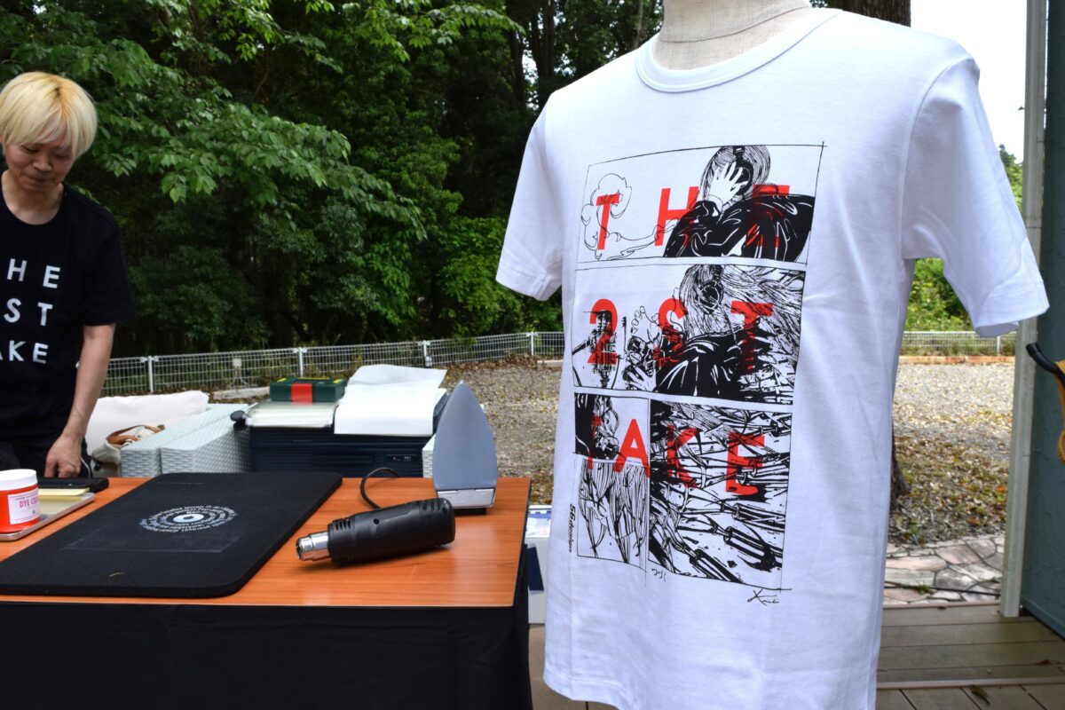 今回の作品を漫画風にしたデザインをプリントした上にTHE 2ST TAKEの文字をプリントする。